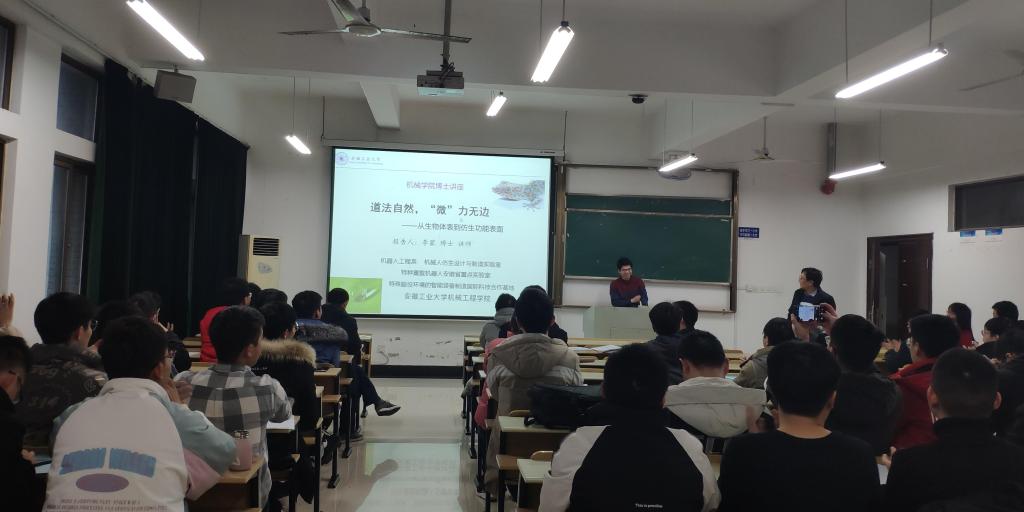 12月7日下午,重点实验室青年博士学术报告系列讲座第二场在机械楼405举行。张兴博士、李蒙博士作为主讲人分别以“三移一转并联机器人型综合及控制研究”、“道法自然,“微”力无边-从生物体表到仿生功能表面”为主题圆满完成此次报告,机械工程学院部分师生参加了报告会。